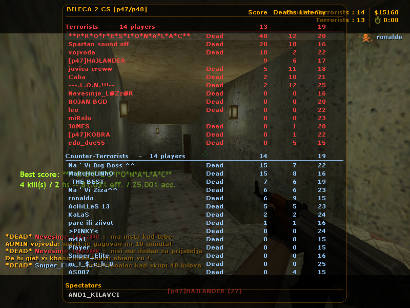 evo HEDOVI i ostali admini pogledajte, razmatrajte pa mi odgovorite jel to s citom ili nije i zasto se djuka-pv-mne tj ja uvijek kickujem od botova admina koji nemaju pravo da banuju ili banuju od onihi koji imaju to pravo a znaju da nemam ceat. razgledajte dobro i nadam se da ce te me ostaviti na miru kad igram na bilecoj 2