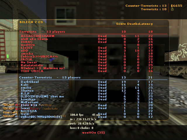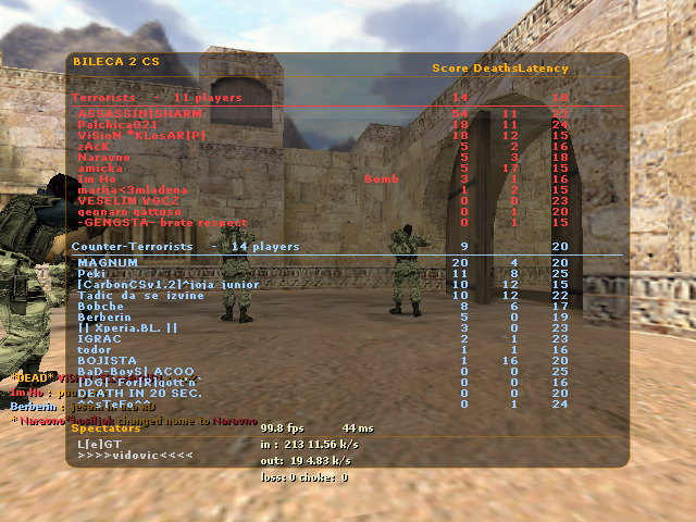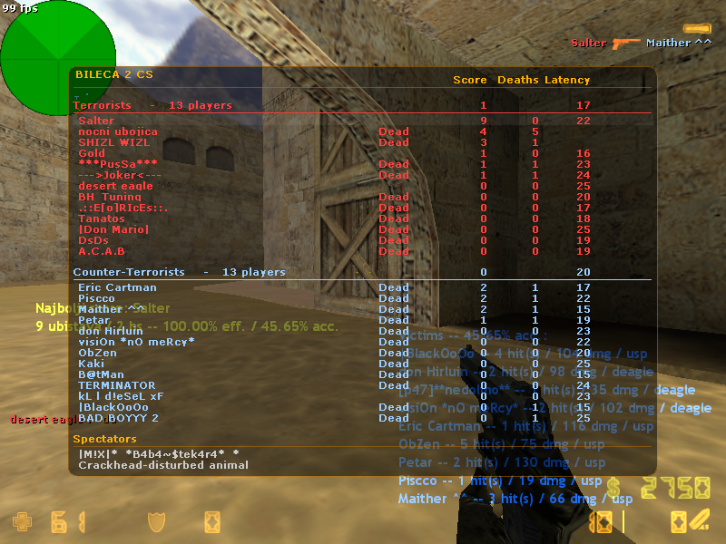 Ovako ovo je bilo jutros nema mnogo igraca, bio je msm ne bas kad sam sliko al msm da je bio Colt 45Cal i stela(za kog nisam siguran) i bio je NODDY koji je tad mozda izaso nzm ni ja, al salta nzm zasto mislis da imam bilo sta skripte, citove i ta sranja koji put ti ponavljam jbt, nije ni meni bilo pravo kad si ti drao pa sta sad ?