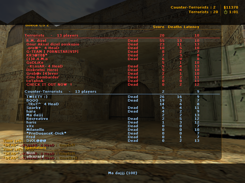 Citat: alkazar91 22.06.2011. 14:53:31Odakle ponovo Legta smrada?mozes citovat kad nema adminaKakav legt druze ........Nisam nikad igrao na serveru.....I zovem se Adis Ramic iz Sarajeva i pazi sta pricas a bez da provjeris....Jednom ce te to kostat glave vjeruj mi.....