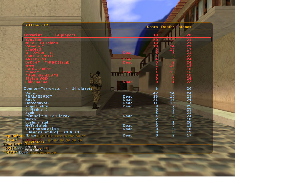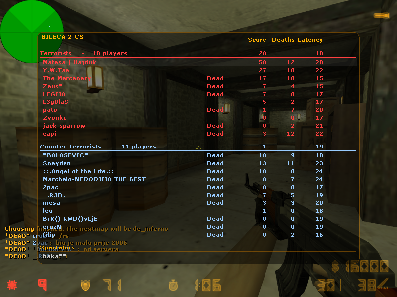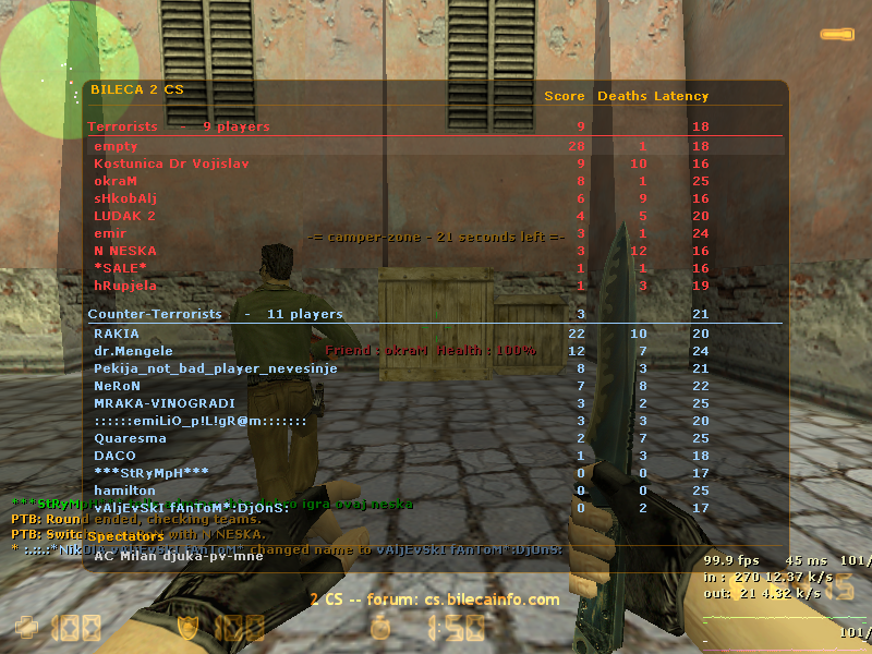 server koji je nekada bio najjaci u bih sad je okupljaliste citera...spiritual decko koji igra na bileci ovde koristi speed...ovaj igor ima aim..nigde admina da ih banuje...i po cemu je ovaj server bolji od bilece....igracki malo bolji...al organizacijski lose lose...boli ih kurac za citove...zato udje tata salter na 5 10 minuta...hehe