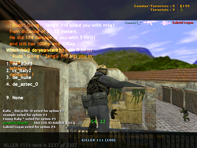 celjevu dade admina ovaj nezna kupit pusku i municiju ima admina, stalno menja mape banuje onog ko ga kill.Mi mu pricamo 1 on suprotno i stavlja vote, za mape, taj i taj je glup,bot,peder,.....Skinite mu admina jbt.
