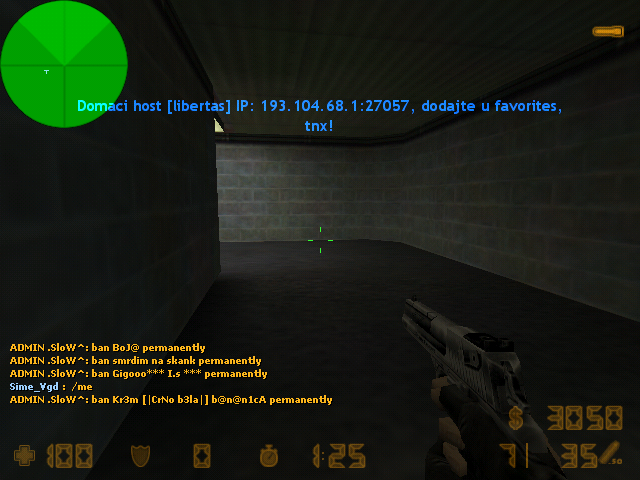 Mogu li da dobijem objasnjenje za Permanently ban By Onur Aksal ?? Vako: Ulazi Onur na server i pise bijelim slovima L[e]GT ide ban ! Ja mu kazem nemoj me plss ban on kaze necu ! I imao sam nako skor 7:4 ! Kucam rs ! Nece me nikako to vece ! I posto kad kucas na p47 sv_aim 1 sv_cheats 1 nmz da ostane obadvoje po 1 ! I ja sam izasao sa servera ! Da bih ukucao sv_cheats 1 ! Ulazim na server izaberem TT i dobijam PERM BAN ! Why ??  >:(